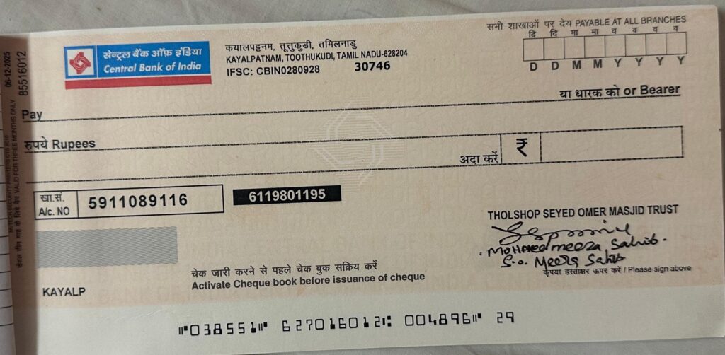 Branch: Kayalpatnam, Thoothukudi.